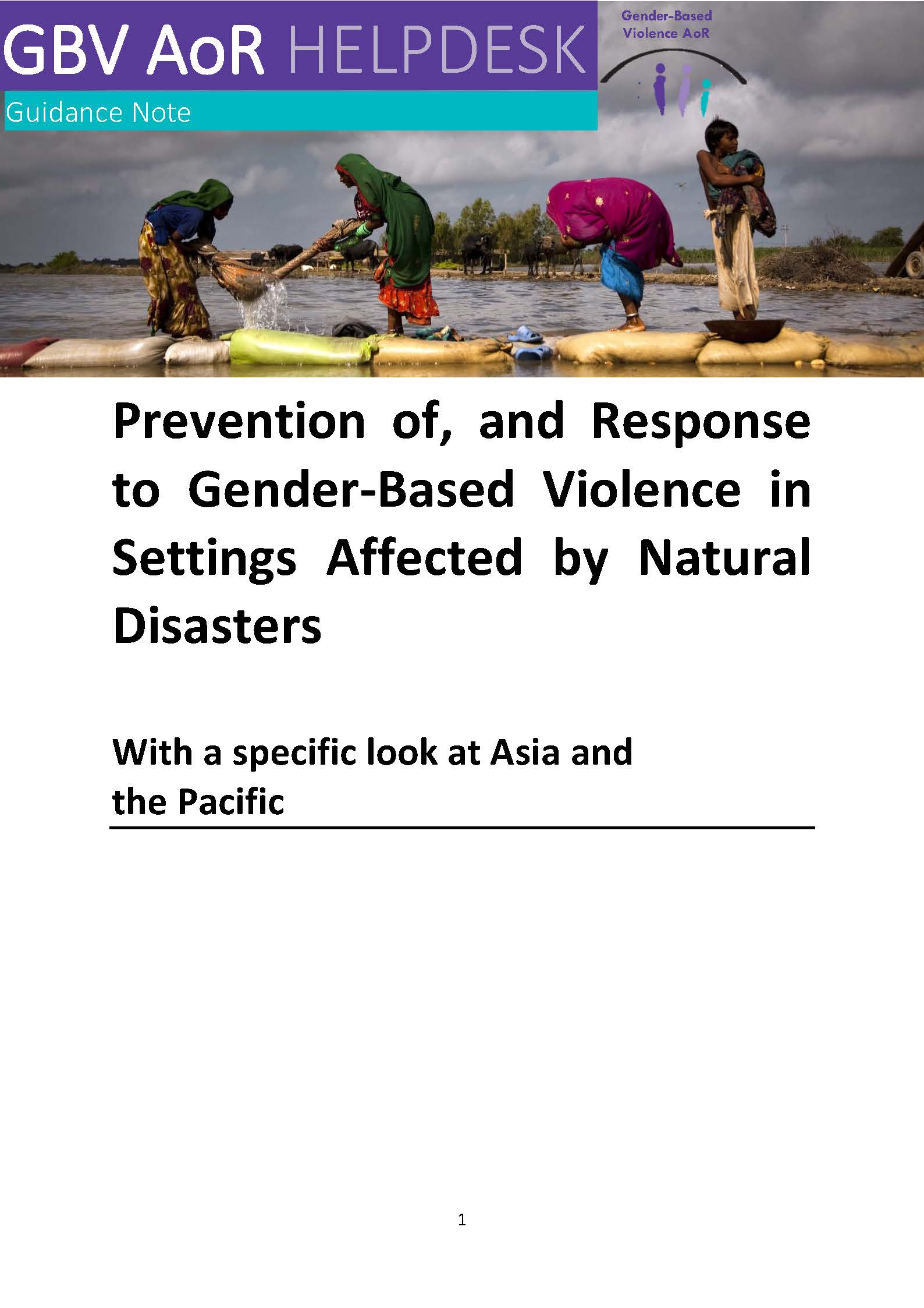Prevention of, and Response to, Gender-Based Violence in Settings Affected by Natural Disasters - GBV AoR Helpdesk 2019