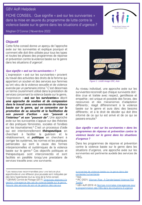 Fiche de conseil: Que signifie « axé sur les survivantes » dans la mise en œuvre du programme de lutte contre la violence basée sur le genre dans les situations d'urgence ?