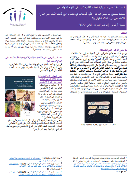 مستند نصائح: ما معنى التركيز على الناجيات في تنفيذ برامج العنف القائم على النوع الاجتماعي في حالات الطوارئ؟