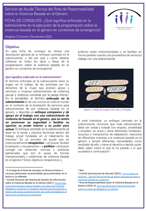 Ficha de consejos: ¿Qué significa enfocado en la sobreviviente en la ejecución de la programación sobre la violencia basada en el género en contextos de emergencia?
