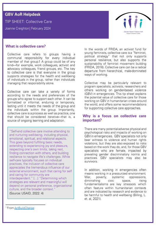 Tip Sheet: Collective Care - GBV AoR Helpdesk 2024