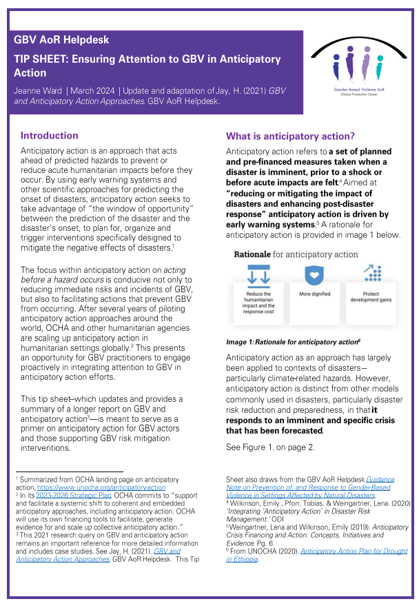 Tip Sheet: Ensuring Attention to GBV in Anticipatory Action